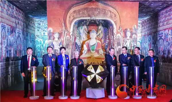 常沙娜先生與敦煌研究院副院長羅華慶共同為“中國敦煌石窟保護研究基金會常書鴻敦煌藝術專項基金”揭牌。