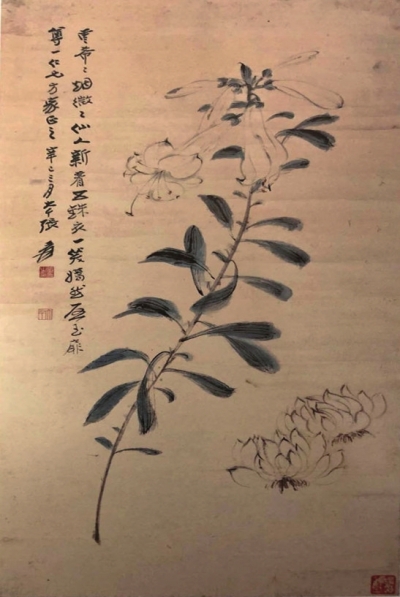 張大千是美食家,他云游海內(nèi)外,所以百味雜融。當(dāng)他吃到如此美味的百合,贊不絕口。后來,他曾為甘肅莊浪縣人,參加過護(hù)法戰(zhàn)爭的楊尊一繪有《百合圖》相贈。張大千繪贈楊的《百合圖》,只見長幅上一株百合以較大的弧形縱呈畫面,枝葉紛披,花朵橙紅嬌艷,鱗莖碩大,張大千還題跋曰:“云希希,煙微微,仙人新著五銖衣,一笑嫣然喜玉扉。”這段題跋很美,意思是說:云煙稀微縹緲,畫中的百合花剛剛開放像是仙女穿上了光彩奪目的仙衣,在美麗的笑容中開門(迎接觀者)。如今這幅畫珍藏于甘肅省博物館中。