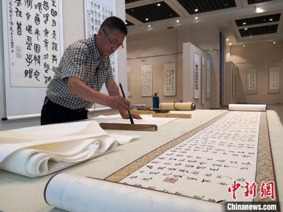 圖為朱群和他的敦煌漢簡書體。 高瑩 攝