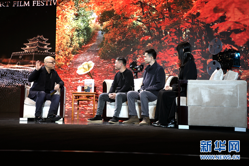 主持人與獲獎(jiǎng)影片的主創(chuàng)團(tuán)隊(duì)在現(xiàn)場交流分享。新華網(wǎng)(劉欣瑜 攝)