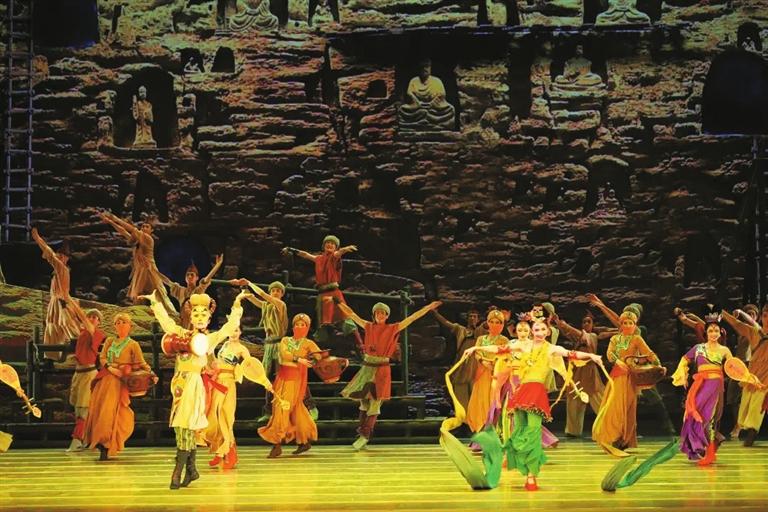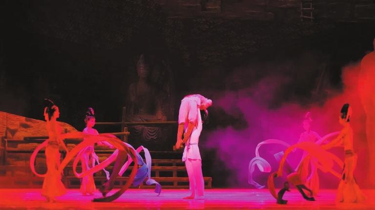據(jù)了解,由蘭州歌舞劇院創(chuàng)作演出的大型舞劇《大夢(mèng)敦煌》自2000年首演至今經(jīng)久不衰,是一部富于傳奇色彩的四幕舞劇,以敦煌藝術(shù)寶庫(kù)的千百年創(chuàng)造歷史為背景,以青年畫師莫高與大將軍之女月牙的愛情歷程為線索,演繹出一個(gè)凄婉動(dòng)人的愛情故事。舞劇展現(xiàn)了絢麗多彩的敦煌文化。本次為期三天的大型舞劇《大夢(mèng)敦煌》亮相的主演莫高和月牙以及乳娘的扮演者都是蘭州歌舞劇院自己培養(yǎng)的優(yōu)秀人才。