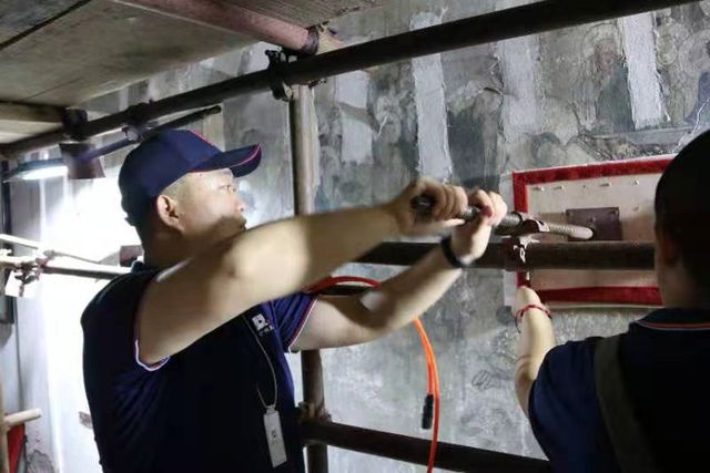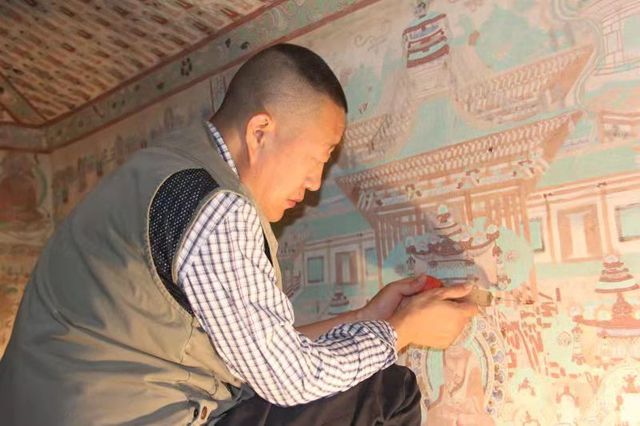 讓李曉洋最終留在這個行業(yè)的“決定性瞬間”發(fā)生在2014年,他和同事在莫高窟360窟開展壁畫修復(fù)。修復(fù)前,墻上的壁畫幾乎完全被浮塵遮蓋,損毀也很嚴重;修復(fù)后,壁畫變得清晰、線條十分明確。那一瞬間,他仿佛有穿梭千年的晃神,“這件事讓我很有成就感,覺得通過我們的努力,能夠讓更多人看到更精美的壁畫,值了。”