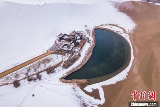 11月20日,雪后天晴,甘肅敦煌月牙泉銀裝素裹分外美麗。 王斌銀 攝