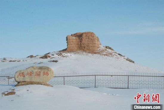 圖為敦煌陽關景區(qū)雪景?!⊥醣筱y 攝