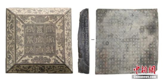 12月14日,甘肅省文物局發(fā)布該省武威地區(qū)唐代吐谷渾王族墓葬群最新考古研究成果。圖為慕容智墓墓志及志側(cè)文字。 中新社發(fā) 甘肅省文物局 供圖