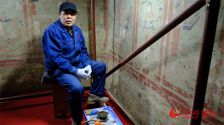 “我從1986年開始在莫高窟工作,今年已經35年了。”敦煌研究院文物保護修復工作者劉濤說,“辛苦是肯定的,洞窟里面氣溫比較低,有時候也比較臟。但是最終把破敗的遺跡修復以后,成就感特別強??吹阶詈蟮某晒?,前面吃的苦都是值得的。”