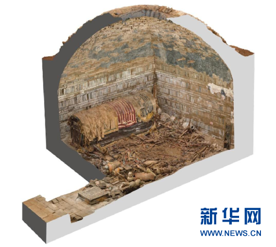 慕容智墓甬道及墓室三維影像圖。(甘肅省文物考古研究所供圖)