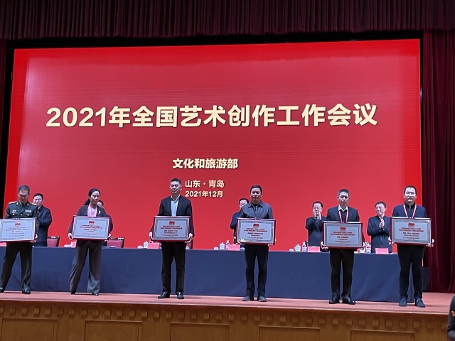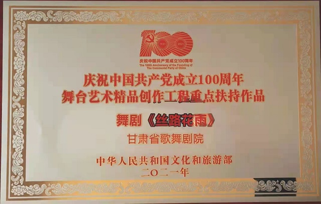 中國甘肅網(wǎng)12月19日訊 12月18日,文化和旅游部在山東省青島市召開的“2021年全國藝術(shù)創(chuàng)作工作會(huì)議”上,發(fā)布了“慶祝中國共產(chǎn)黨成立100周年舞臺(tái)藝術(shù)精品創(chuàng)作工程”入選名單,頒發(fā)了“慶祝中國共產(chǎn)黨成立100周年舞臺(tái)藝術(shù)精品創(chuàng)作工程獎(jiǎng)牌”。甘肅省文化和旅游廳遴選推薦的舞劇《絲路花雨》《大夢敦煌》《彩虹之路》、隴劇《官鵝情歌》、小品《你笑起來真好看》等5部舞臺(tái)藝術(shù)精品,經(jīng)文旅部評(píng)審正式入選“舞臺(tái)藝術(shù)精品創(chuàng)作工程重點(diǎn)扶持作品”。甘肅省歌舞劇院創(chuàng)排的舞劇《絲路花雨》作為12家“百年百部”工程受獎(jiǎng)單位在全國藝術(shù)創(chuàng)作工作會(huì)議上接受獎(jiǎng)牌和榮譽(yù)證書,甘肅省文旅廳、山東省文旅廳等參會(huì)代表12家領(lǐng)獎(jiǎng)單位上臺(tái)領(lǐng)獎(jiǎng),充分展現(xiàn)了文旅部對(duì)甘肅省入選作品質(zhì)量及組織工作的高度肯定。
