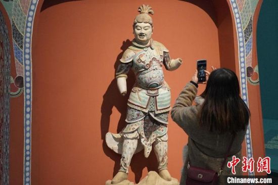 圖為觀眾參觀彩塑臨摹品?!【琶赖┰觥z