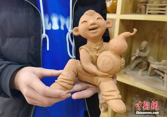 圖為學生創(chuàng)作“孩童和葫蘆”。 劉玉桃 攝