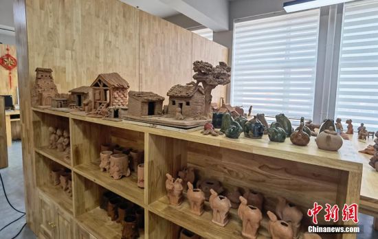 圖為泥塑作品展現(xiàn)人們娛樂場景。 劉玉桃 攝