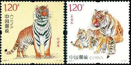 2010年1月5日發(fā)行第三輪生肖郵票第七套《庚寅年》特種郵票,全套1枚,由中央美術(shù)學院設(shè)計學院教授馬剛設(shè)計。設(shè)計者利用三維造型的特點采用擬人化的造型手法,勾勒出一只氣宇軒昂、活潑動人的卡通虎形象。