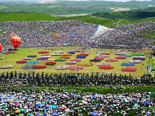 2019年7月30日,在甘肅甘南舉辦的“一會一節(jié)”吸引近20萬名當(dāng)?shù)厝罕姾陀慰陀^看。甘肅省文旅廳供圖