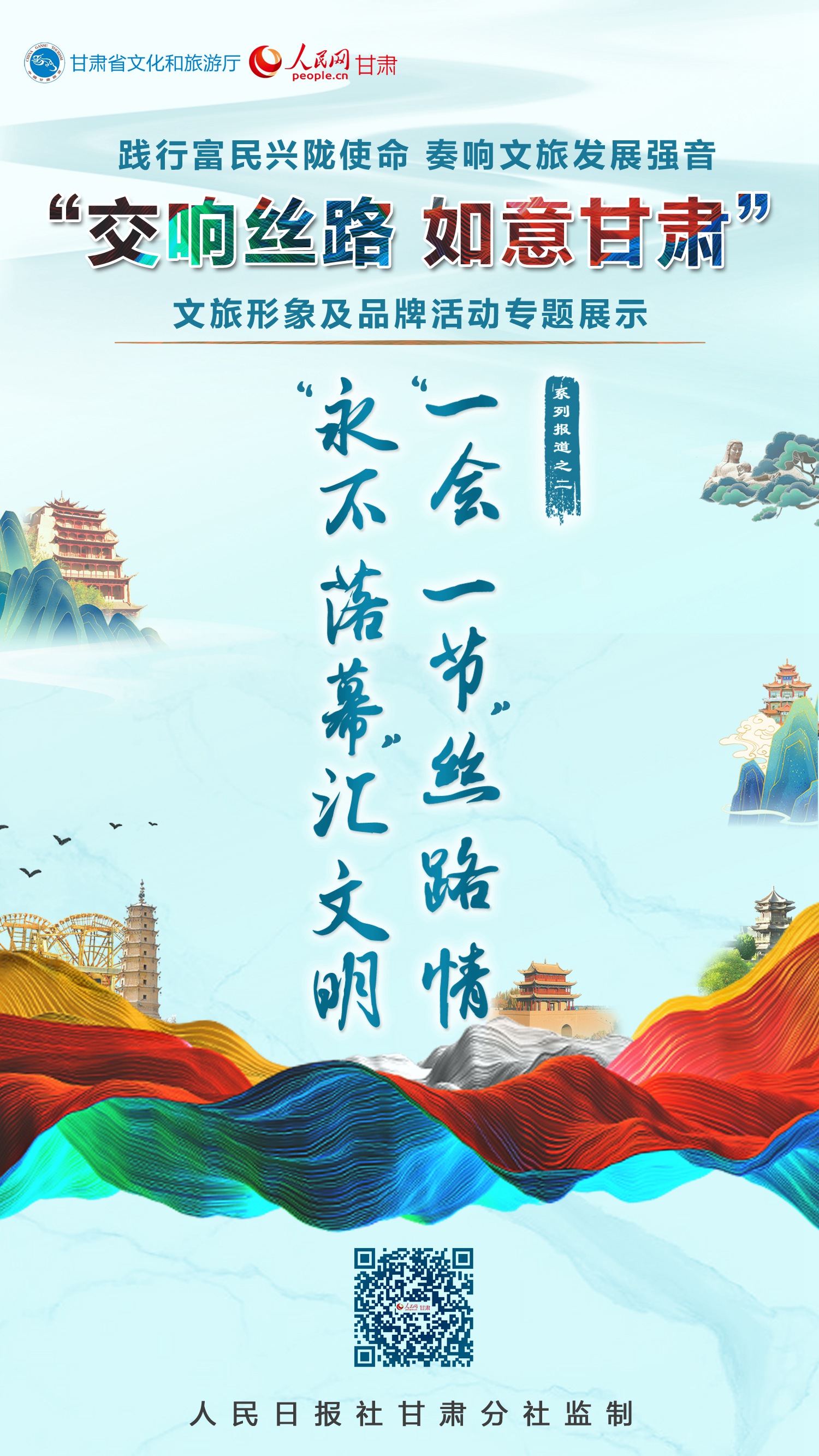 奮進新征程,建功新時代。2022年全國兩會精神伴隨浩蕩春風傳遍隴原大地。甘肅省文旅廳聯合人民網甘肅頻道推出“交響絲路·如意甘肅”文旅形象及品牌活動線上專題展示,全面展現全省文旅系統將殷殷重托化為實干擔當,熱情講好甘肅故事、大力宣傳推介甘肅的生動實踐和孜孜探索;激勵隴原兒女更加自信地宣傳甘肅歷史之美、山河之美、文化之美;引導社會各界人士持續(xù)關心關注、支持幫助甘肅文化和旅游業(yè)高質量發(fā)展,合力打造文化興、生態(tài)美、百姓富的文化旅游強??!