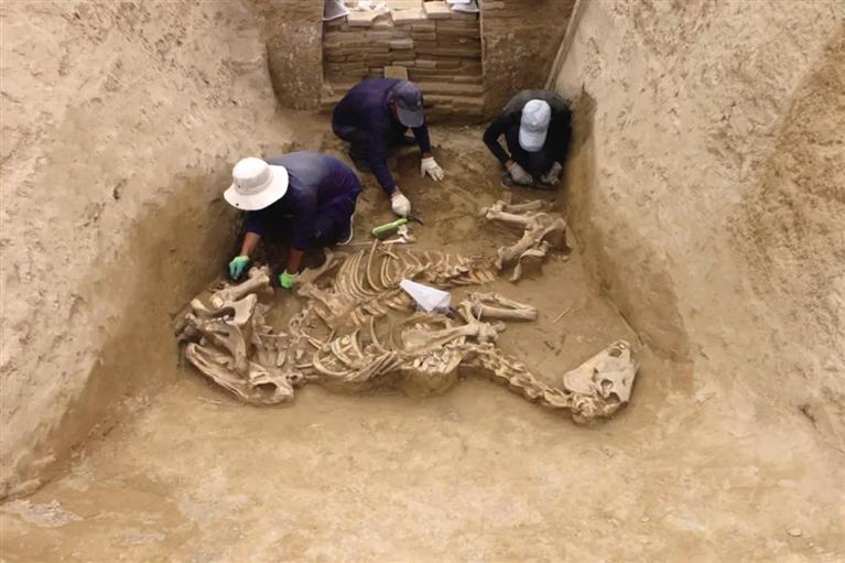 長嶺M1墓道內(nèi)殉馬現(xiàn)場清理