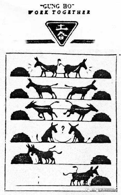 今天,我們回眸海倫·斯諾特別喜愛(ài)和積極傳播的這幅“工合”卡通畫,可以更形象地感受寓含其中的“工合”理念和“工合”精神,“不忘本來(lái),吸收外來(lái),面向未來(lái)”(習(xí)近平語(yǔ)),促使我們努力把這個(gè)起源于中國(guó)、流傳于世界的精神,納入中國(guó)共產(chǎn)黨人的精神譜系之中(注1);把“工合/Gung Ho”這個(gè)中西合璧、寓意深遠(yuǎn)的獨(dú)有詞語(yǔ),納入我們的國(guó)際傳播話語(yǔ)體系中(注2),高舉“工合/Gung Ho”大旗(注3),使之成為我國(guó)的一種軟實(shí)力,成為推動(dòng)構(gòu)建人類命運(yùn)共同體,實(shí)施“一帶一路”倡議的一種人類大家庭共有理念和精神力量。