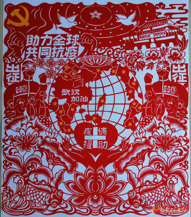 2020年10月中華文化促進會剪紙藝術委員會協(xié)同杭州市文化廣電旅游局,杭州市文化館共同舉辦“愛心同鑄,共創(chuàng)末來”全國抗疫情剪紙精品展中,剪紙作品《助力全球,共同抗疫》入選并獲銀獎。