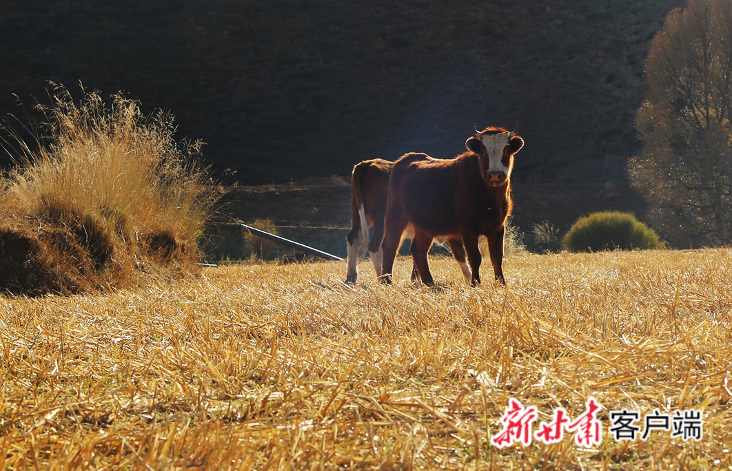 在秋日暖陽的照耀下,山谷中的楊樹林染上了一層絢麗色彩,干凈整潔的農(nóng)家院掩映其中。牛羊在草地上悠閑覓食,與汩汩流淌的溪水相映成趣。一派多姿多彩的美麗畫卷,令人心曠神怡、流連忘返。