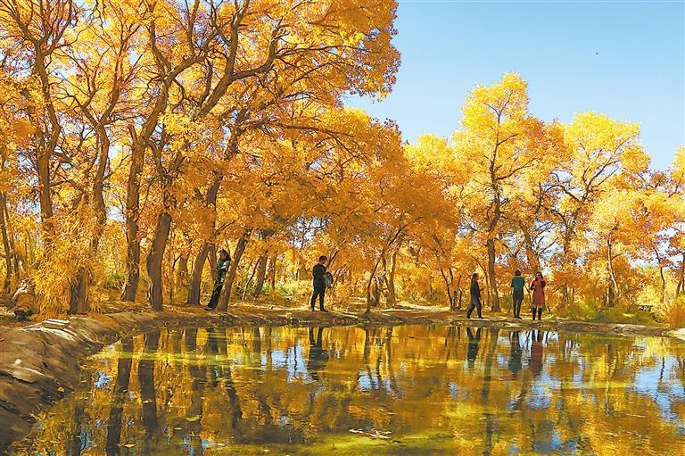 金秋十月,位于敦煌市莫高鎮(zhèn)的胡楊林迎來一年中最美的時節(jié),金色胡楊在陽光的照射下,顯得更加美不勝收。