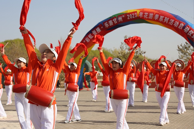 人民網(wǎng)蘭州4月9日電 (記者高翔)4月8日,“彩虹張掖·樂游甘州”2023花游季系列活動(dòng)啟動(dòng)儀式在甘肅省張掖市潤(rùn)泉湖公園舉行。