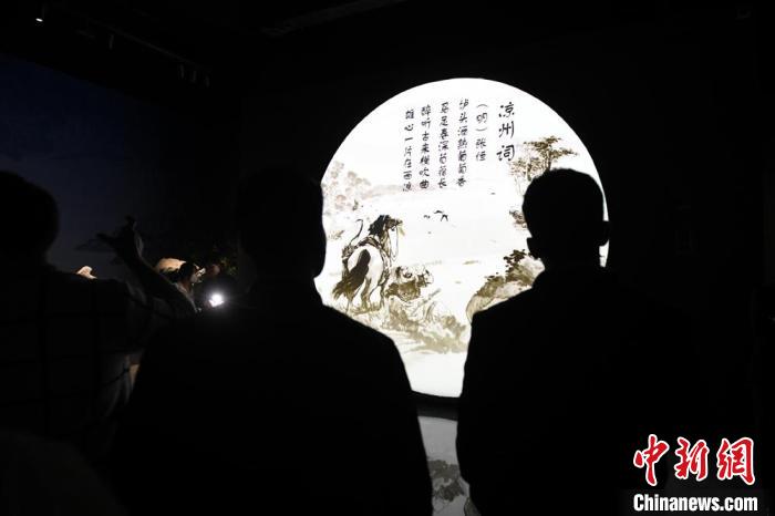 圖為游客在涼州詞館內(nèi)體驗(yàn)閱讀古詩(shī)詞?!〈魑牟?nbsp;攝