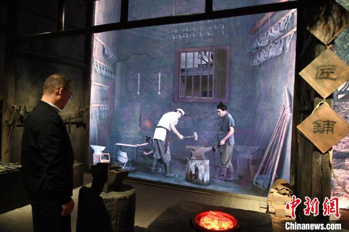 圖為游客在大漢賦館內(nèi)參觀鐵匠鋪?!〈魑牟?nbsp;攝