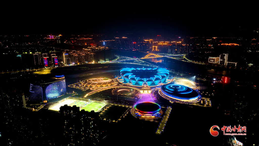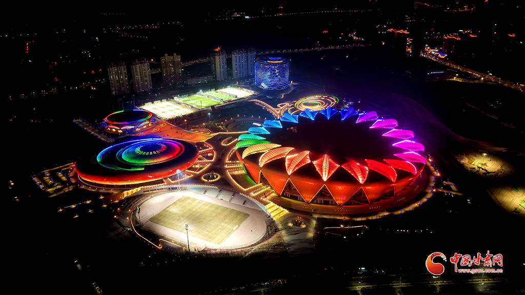 奧體中心的夜景美輪美奐,室外運(yùn)動(dòng)場上健身的人絡(luò)繹不絕。玫瑰體育館內(nèi)兩側(cè)座椅整齊排放,場館中間的綠色地毯引人注目;郁金香綜合館除了能夠感受籃球的激情,還能體驗(yàn)冰雪運(yùn)動(dòng)的魅力;百合游泳館內(nèi)的跳臺(tái)和泳池靜靜地等待著游泳健將的光臨。奧體中心多維度展示以‘舞動(dòng)于絲綢之路上的花朵’為設(shè)計(jì)理念,‘五朵金花’的設(shè)計(jì)不僅象征‘奧運(yùn)之花’競技開放,也體現(xiàn)了奧運(yùn)五環(huán)環(huán)環(huán)相扣的理念。