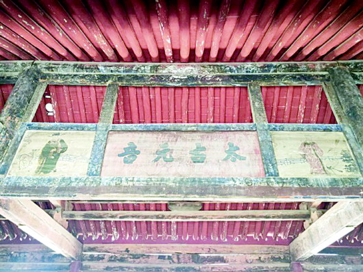 戲樓內(nèi)二簾額板和梁柱上較好地保存了許多清代彩畫(huà),其中以墨書(shū)“太古元音”和彩畫(huà)“天官賜福圖”最為精彩。