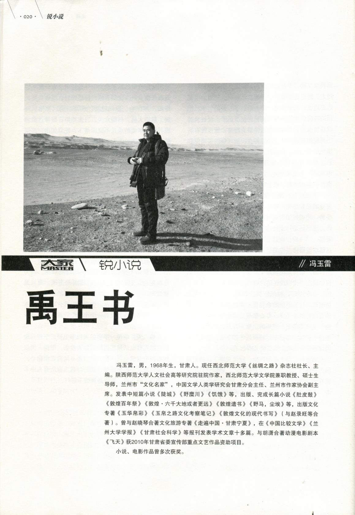 馮玉雷,畢業(yè)于陜西師范大學(xué)中文系,現(xiàn)任甘肅文化發(fā)展研究院常務(wù)副院長。一級作家。陜西師范大學(xué)人文社會科學(xué)高等研究院特聘駐院作家,上海交通大學(xué)神話學(xué)研究院學(xué)術(shù)委員,蘭州金城文化名家,中國比較文學(xué)學(xué)會文學(xué)人類學(xué)研究會理事。中國作家協(xié)會會員。馮玉雷自2006年開始研究玉玉器和玉文化,在《甘肅社會科學(xué)》《寧夏社會科學(xué)》《中國社會科學(xué)報》《中國藝術(shù)報》等報刊發(fā)表玉文化學(xué)術(shù)論文多篇。出版長篇小說《敦煌·六千大地或者更遠》《敦煌遺書》《野馬,塵?!贰队硗鯐芳坝裎幕瘜V队袢A帛彩》《玉帛之路文化考察記》《條條玉路通昆侖》等。中篇小說《禹王書》入圍第八屆魯迅文學(xué)獎。榮登《大家》2020年第1期封面人物。