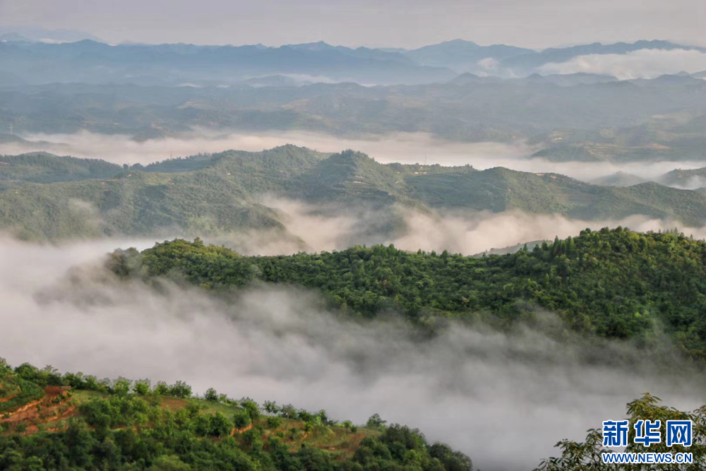 近日,甘肅省隴南市兩當(dāng)縣上空云霧繚繞、煙波浩渺,縣城、山峰在霧海中若隱若現(xiàn),陽(yáng)光從云霧間掠過(guò),勾勒出一幅幅如夢(mèng)如幻的美麗畫(huà)卷。新華網(wǎng)發(fā)(楊曉 攝)