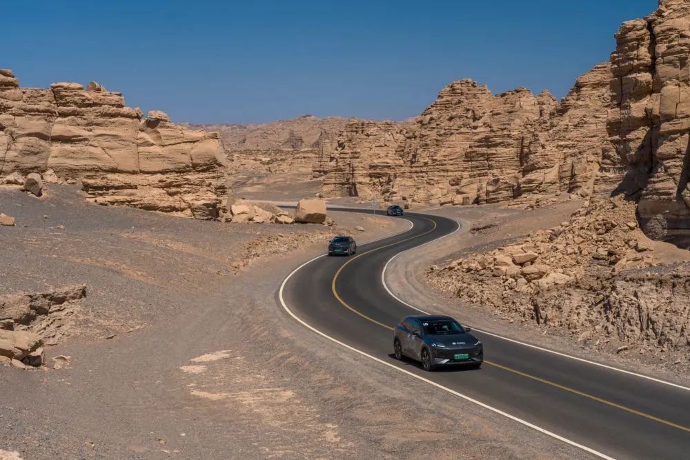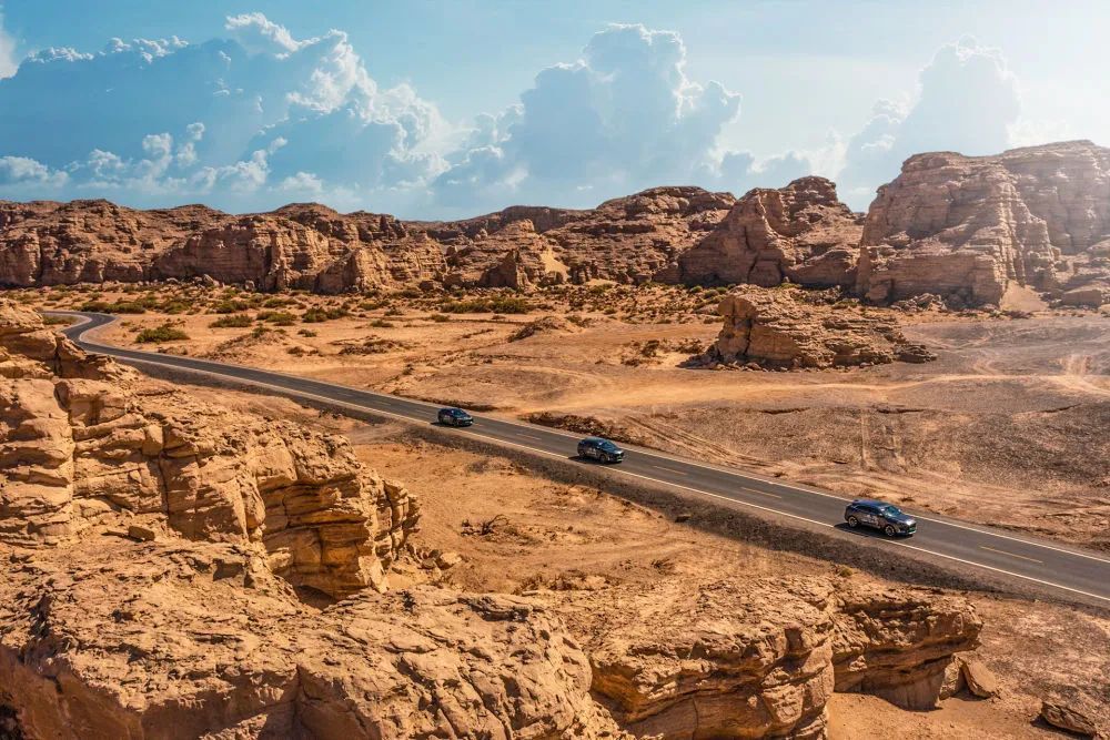 新華社“一帶一路全球行”報(bào)道團(tuán)駕駛長(zhǎng)安汽車(chē)穿越新疆哈密大海道。新華社發(fā)(卓鵬 攝)