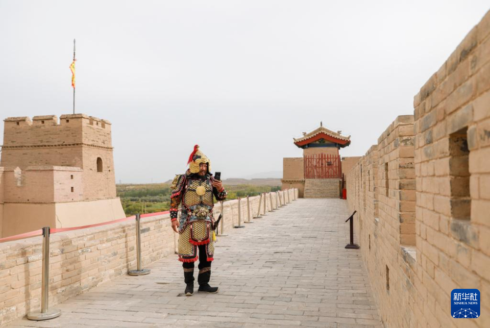 9月26日,李森在拍攝宣傳甘肅嘉峪關(guān)關(guān)城景區(qū)的短視頻,他在短視頻平臺(tái)已有40多萬(wàn)粉絲。新華社記者 方欣 攝