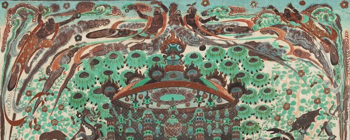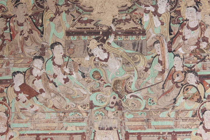 莫高窟第112窟-壁畫(huà)-主室北壁-報(bào)恩經(jīng)變之樂(lè)舞圖。(敦煌研究院供圖)