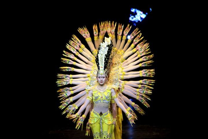 2023年9月10日晚,在甘肅敦煌大劇院,演員在大型情景音畫(huà)劇《千手千眼》中表演。新華社發(fā)(張曉亮 攝)