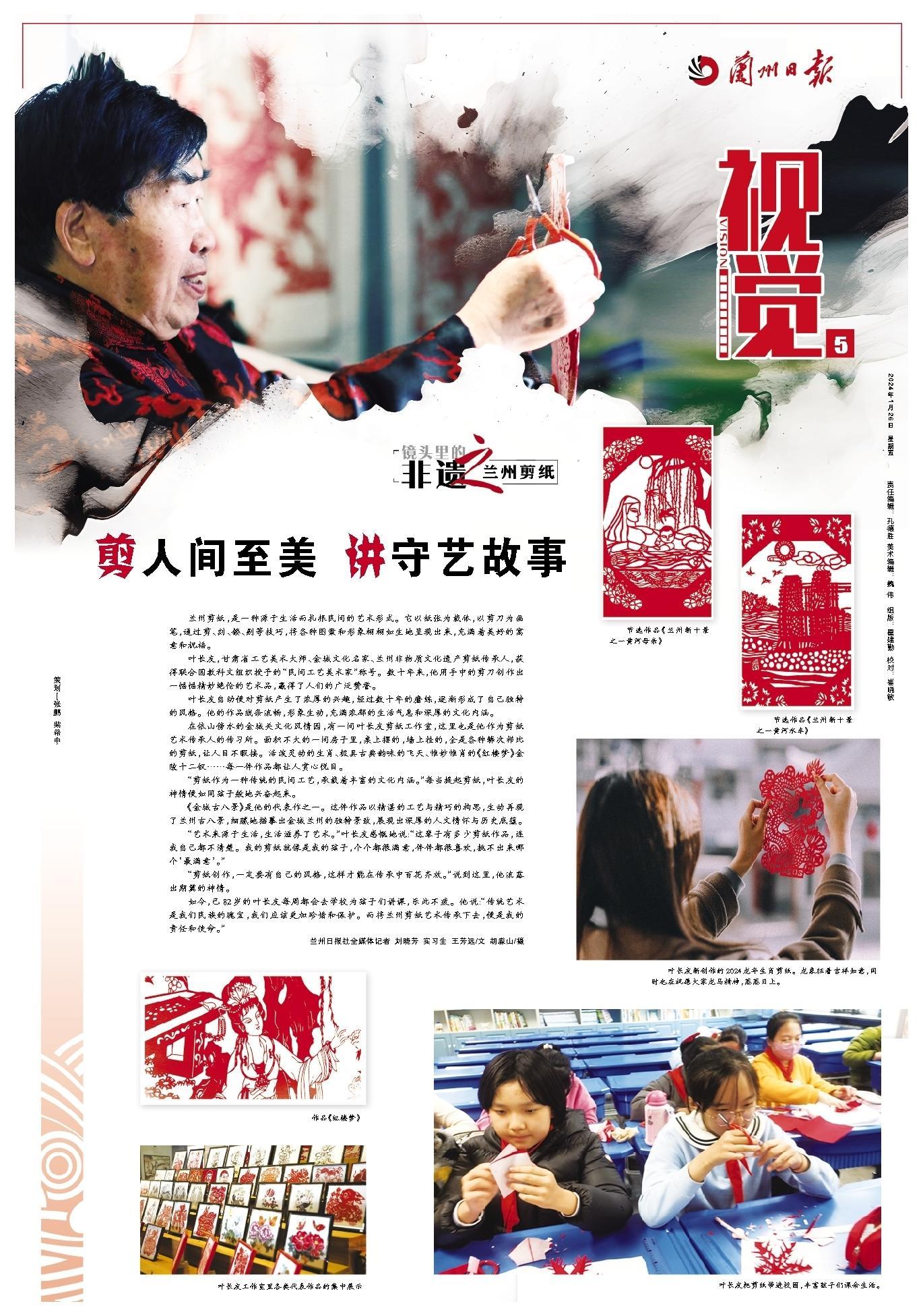 如今,已82歲的葉長友每周都會(huì)去學(xué)校為孩子們講課,樂此不疲。他說:“傳統(tǒng)藝術(shù)是我們民族的瑰寶,我們應(yīng)該更加珍惜和保護(hù)。而將蘭州剪紙藝術(shù)傳承下去,便是我的責(zé)任和使命。”
