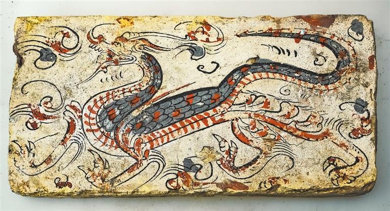中國(guó)人恪守天人合一、陰陽(yáng)平衡、五行生克的風(fēng)水理論,風(fēng)水中龍脈對(duì)人心理的影響深遠(yuǎn),使得龍?jiān)诮ㄖb飾、墓葬中普遍應(yīng)用,成為中國(guó)建筑裝飾藝術(shù)的瑰寶。隨著兩漢磚室墓的出現(xiàn)和流行,由星辰崇拜衍生而來(lái)的四靈形象,逐漸成為墓葬建筑裝飾的重要元素,如金昌市博物館藏的魏晉青龍磚,龍首高昂,龍須上揚(yáng),曲頸挺胸,張口吟嘯,前肢登騰,后肢做行進(jìn)狀,周圍環(huán)繞云氣紋,有隨云彩而飛動(dòng)之感。