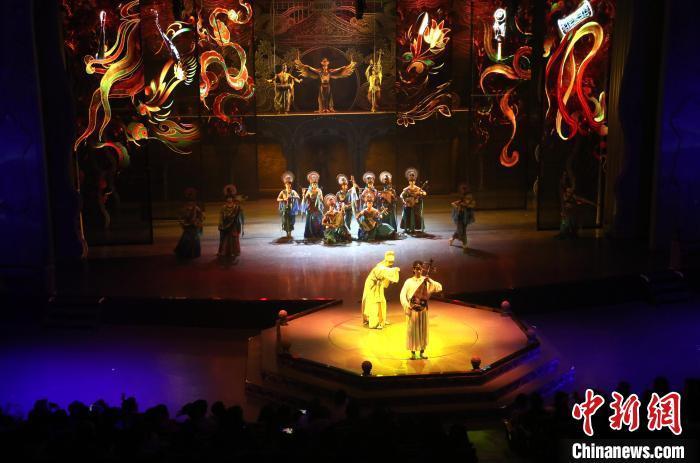 2月15日晚,游客在觀看全球首部洞窟式沉浸體驗(yàn)劇《樂動敦煌》。張曉亮 攝