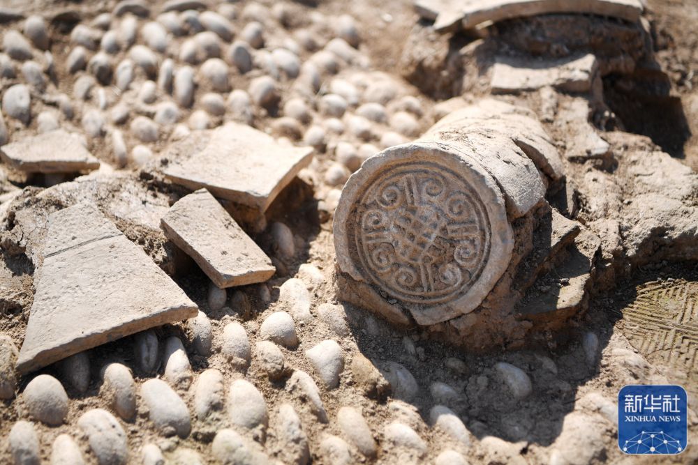 這是甘肅省隴南市禮縣四角坪遺址出土的云紋瓦當(2022年6月10日攝)。