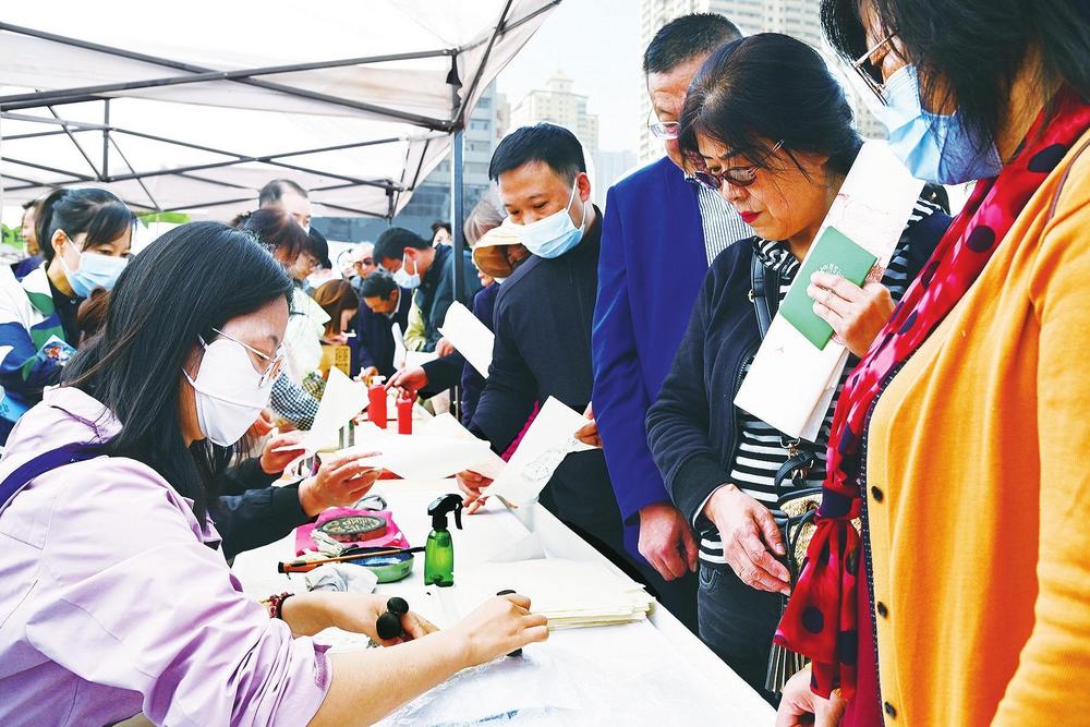 活動(dòng)現(xiàn)場(chǎng),甘肅省圖書館的工作人員帶領(lǐng)讀者體驗(yàn)傳拓之美。 新甘肅·甘肅經(jīng)濟(jì)日?qǐng)?bào)記者 瞿娟 攝
