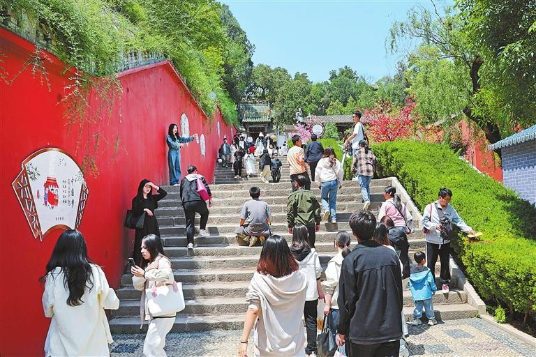 伏羲廟廣場(chǎng)吸引游客打卡拍照。