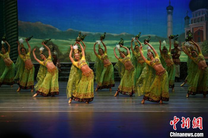 2023年4月17日晚,中國經(jīng)典舞劇《絲路花雨》在澳門百老匯劇場演出。(資料圖)甘肅演藝集團供圖