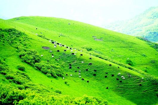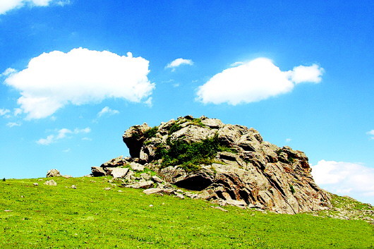 秦人遠去了,只留下那些讓后人至今懷想不已的地名,諸如石鼓山、景墩梁、牧馬梁、上店子、下店子、大卜峪、瓦泉峪等,而尤以石鼓山最為著名,著名得連那部白發(fā)三千丈的《水經注》里,都記載著它的故事:“山在梧中聚,有石鼓不擊自鳴,鳴則兵起。漢成帝鴻嘉三年,天水冀南山有大石自鳴,聲隱隱如雷,有頃止,聞于平襄二百四十里,野雞皆鳴。石長丈三尺,廣厚略等,在崖勒,去地百余丈,民俗名曰石鼓。”石鼓山是朱圉山最高峰,海拔2625米,山峰陡峭,人跡罕至,遠望如石鼓,近看似臥牛,茂林幽泉,森秀無比。初春時節(jié),萬物透綠而石鼓白雪皚皚;大雨前夕,飛鳥翱翔而山上煙云彌漫。更為神奇的是,山丘之巔,突兀一石,酷似一頭臥北朝南的耕牛,翹首做犀牛望月之狀,人稱臥牛山。臥牛山石頸之下,有一巨石,其面圓而平,每當正午陽光直射之時,遠遠望去,石面宛如獸皮所蒙,恰如一面威風凜凜的巨型戰(zhàn)鼓,恍惚之中,有如雷聲隱隱而來,民呼之曰石鼓,石鼓山因此得名。石鼓山素來以厚重的人文歷史和優(yōu)美的草原風光而著稱,尤為聞名的“石鼓擎雪”,自古就是“甘谷八景”之一。千百年來,石鼓山甘愿舍棄繁華,遠離人世,在淡泊寧靜的歲月中,固執(zhí)而堅定地守望古坡,守望古坡人家。