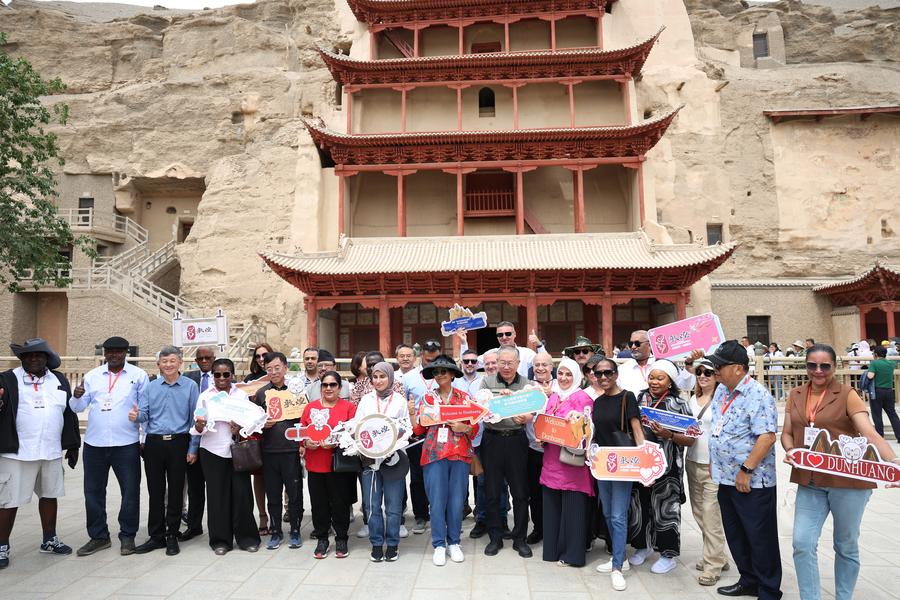 6月6日至8日,來(lái)自22個(gè)國(guó)家的駐華使節(jié)和高級(jí)別外交官走進(jìn)敦煌,尋訪莫高窟,游覽鳴沙山月牙泉景區(qū),參加河西走廊五市的文旅專場(chǎng)推介會(huì),并在對(duì)話會(huì)上共同探討“絲路精神推動(dòng)文明交流互鑒”。