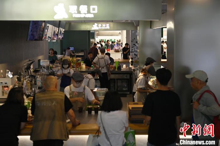 6月19日,甘肅省博物館藝術(shù)生活館在甘肅蘭州開館。該館是甘肅省博物館打造的一處復(fù)合型高價(jià)值文化空間,融合了咖啡、烘焙、展覽、藝術(shù)書店、文創(chuàng)銷售等多樣化業(yè)態(tài)。圖為顧客排隊(duì)買單。中新社記者 李亞龍 攝