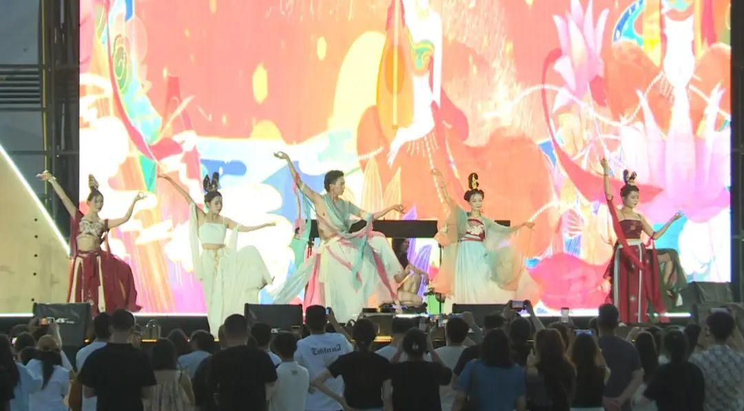 本次電音節(jié)以古老的“絲綢之路”為靈感源泉,巧妙融合了敦煌獨特的文化藝術(shù)和現(xiàn)代音樂元素。活動現(xiàn)場,觀眾沉浸在五彩斑斕的燈光秀和震撼人心的音響效果中,還能親身參與繪制飛天圖案、體驗傳統(tǒng)樂器演奏,深度感受敦煌的文化藝術(shù)魅力。