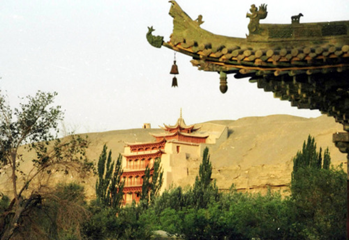 從20世紀(jì)70年代末開始,大量先進(jìn)科技不斷被引入敦煌石窟保護(hù)。新技術(shù)、新材料、新手段的不斷運用,豐富了敦煌遺產(chǎn)的保護(hù)技術(shù)和保護(hù)手段,有效改變了石窟內(nèi)部及其環(huán)境的保護(hù)狀況,使敦煌遺產(chǎn)的保護(hù)工作從原來的搶救性保護(hù),過渡到了科學(xué)保護(hù)階段。圖為透過敦煌莫高窟前的牌樓一角望去,敦煌莫高窟標(biāo)志性建筑九層樓依舊雄偉壯觀。新華社記者梁強攝(2004年10月25日發(fā))