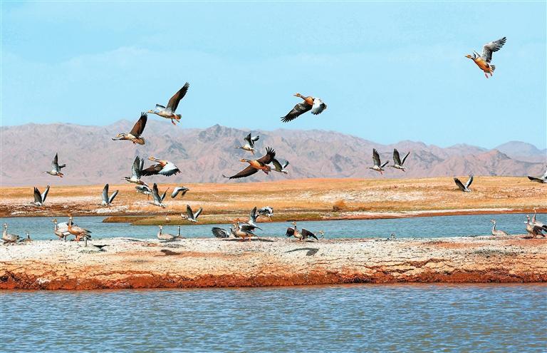 近年來,經(jīng)過當(dāng)?shù)赜嘘P(guān)部門和甘肅鹽池灣國家級自然保護(hù)區(qū)的有效治理和保護(hù),野生動物種群逐漸增多。每年遷徙至此繁衍生息的鳥類種群和數(shù)量不斷增加,時常上演萬鳥翔集的壯觀場景,勾勒出一幅和諧壯美的大自然畫卷。