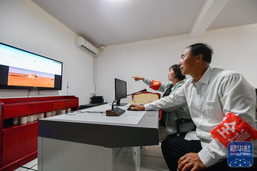 ↑7月16日,張吉全和妻子聞春瑜通過監(jiān)控巡查漢長(zhǎng)城遺址。