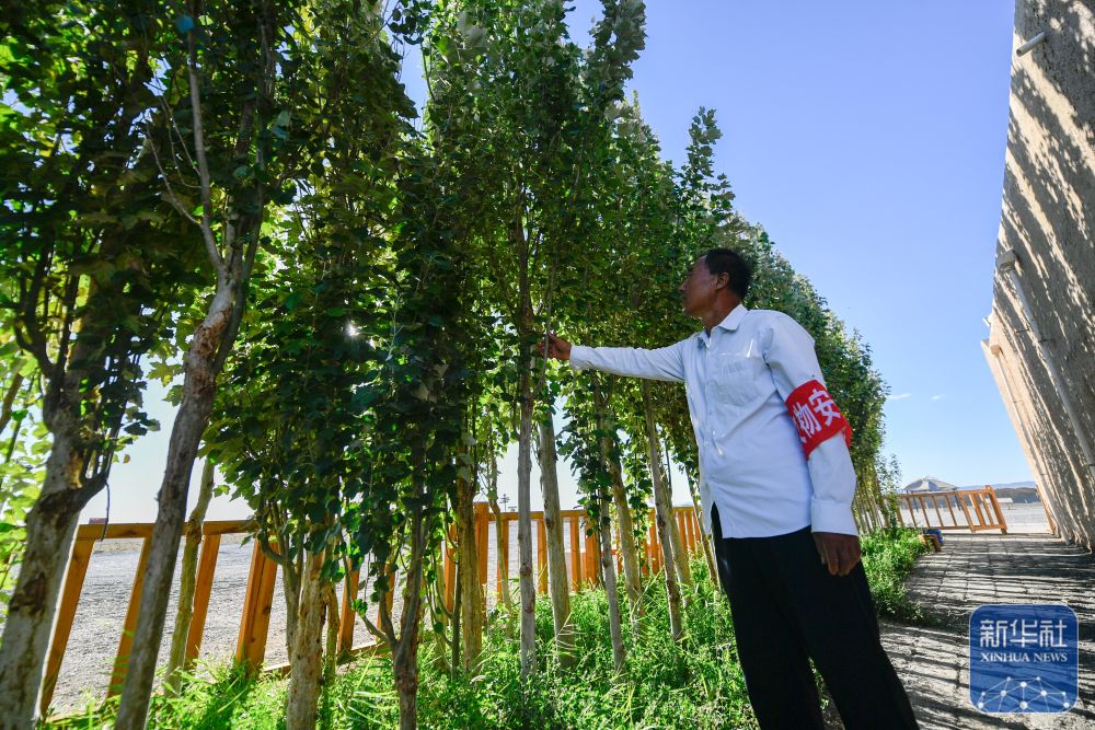 后來,得益于敦煌加強(qiáng)文保力量,他的妻子聞春瑜也成為一名文保員。從此,他們夫妻二人便扎根大漠,像古代戍邊戰(zhàn)士一樣守護(hù)長(zhǎng)城。他們?cè)诜壳拔莺蠓N下白楊樹,澆灌出一片菜園,為生活增添點(diǎn)點(diǎn)綠意與希望。