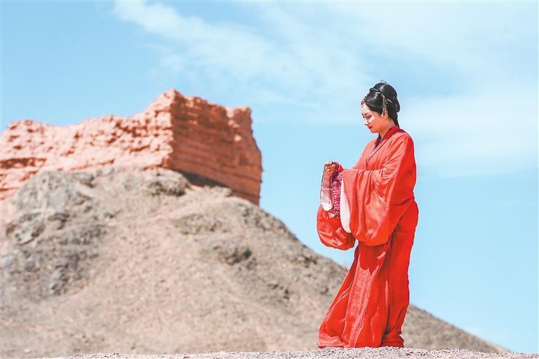 陽(yáng)關(guān)遺址前,漢服留影仿佛穿越千年。